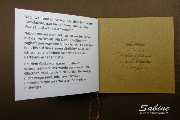 Und in der Mitte als Büchlein die Geschichte, schön verteilt auf 4 4x4" Seiten: