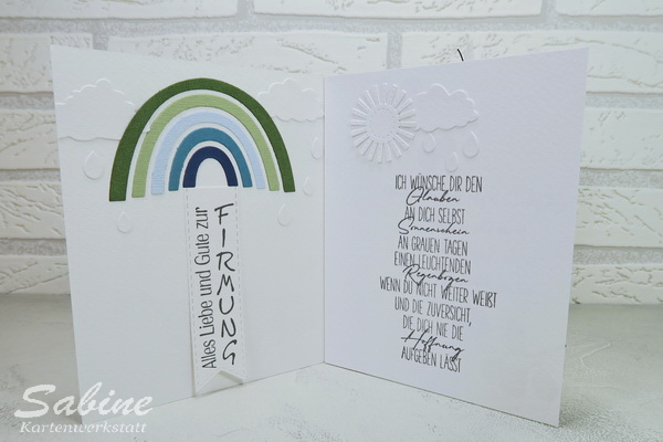 Nachdem ich Stempel und Stanzen, die ich gerne für die Karte zur Firmung verwenden wollte, herausgelegt hatte, fing das große Nachdenken an: Ganz schön viel, auf welche Form passt das bloß alles?